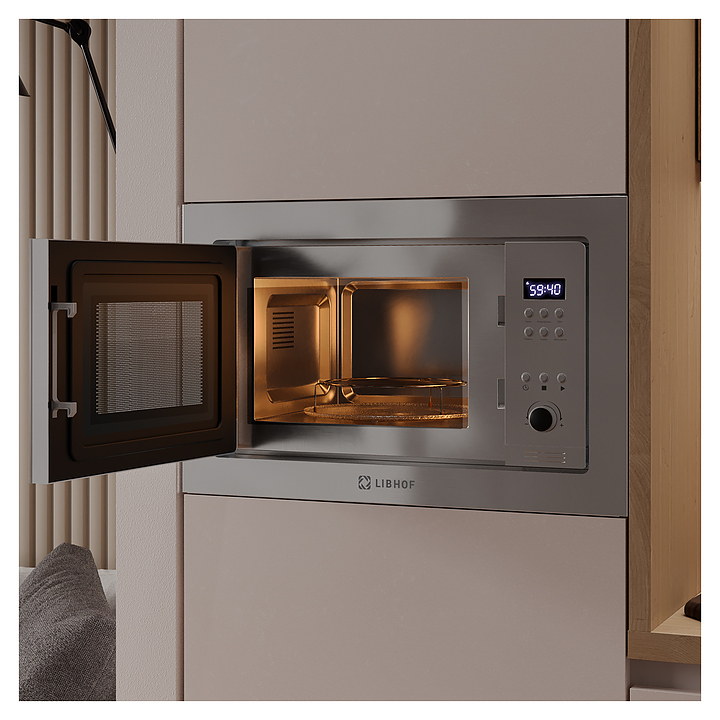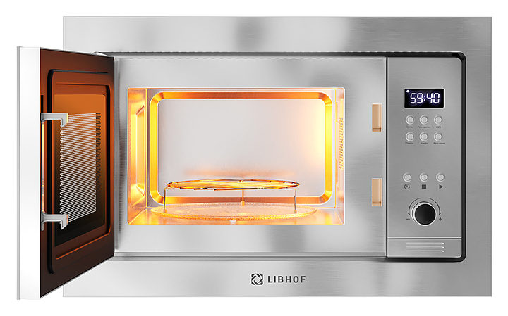 Микроволновая печь Libhof MWB-6031S предназначена для приготовления пищи, подогрева готовых блюд и ингредиентов, а также размораживания полуфабрикатов в частных домах, квартирах, отелях и офисах. Модель оснащена цифровым управлением, кварцевым грилем, дверцей с боковым открыванием и внутренней подсветкой. Фасад выполнен из нержавеющей стали. В комплект поставки входят вертел, вращающаяся тарелка из боросиликатного стекла и металлическая подставка для гриля. Особенности: