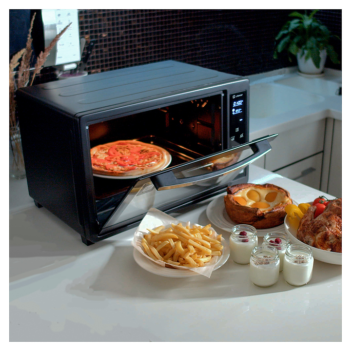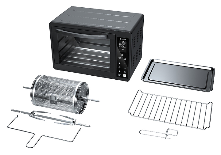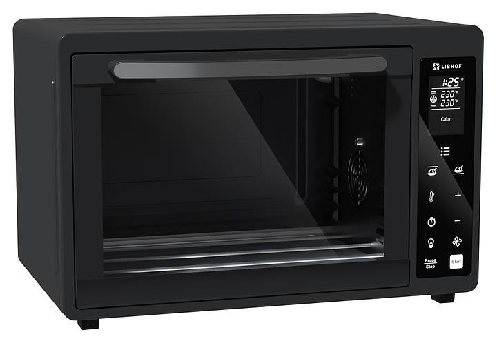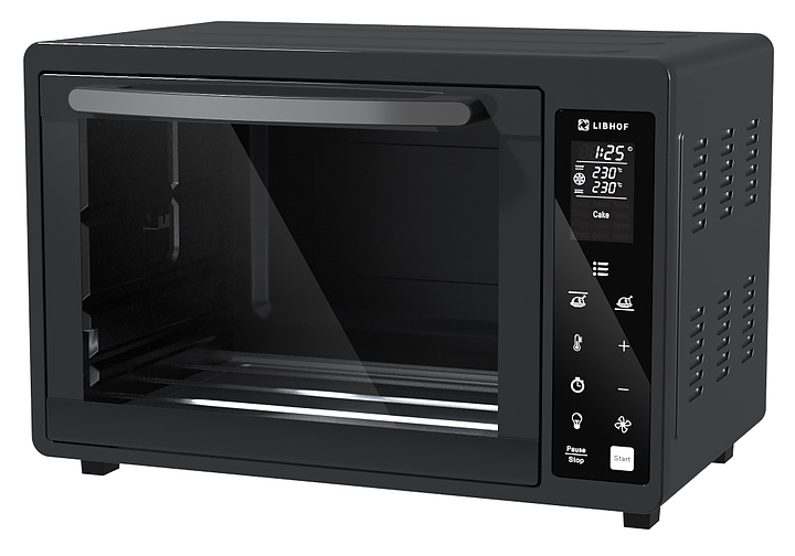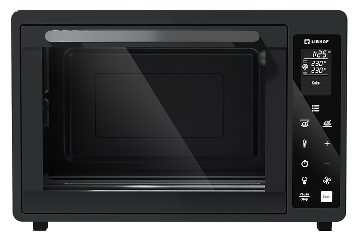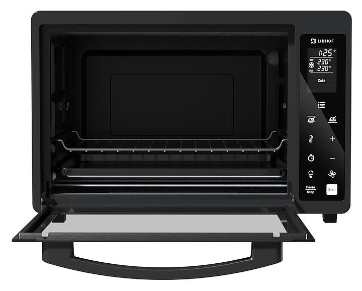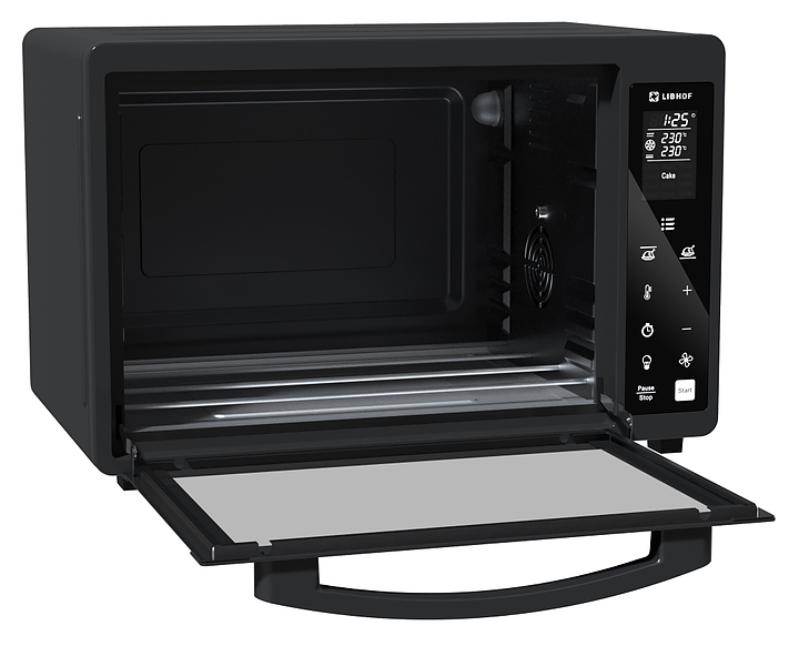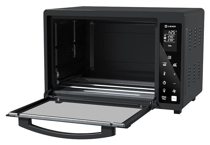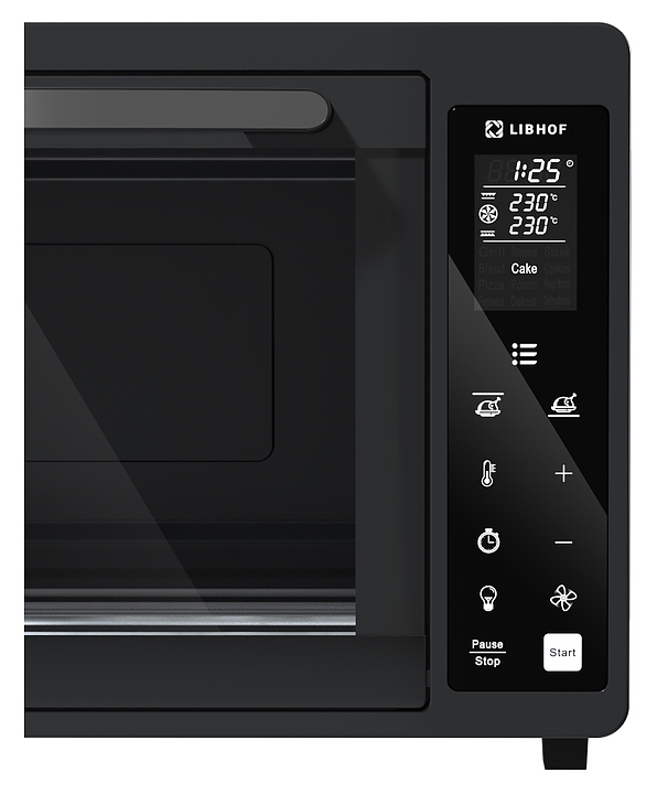 Мини-печь Libhof OVX-46 предназначена приготовления и разогрева различных блюд, выпечки кондитерских и хлебобулочных изделий в частных домах, квартирах, отелях и офисах. Модель оснащена сенсорной панелью управления с дисплеем и внутренней подсветкой. Дверца выполнена из двухслойного жаропрочного стекла, камера - с двойным антипригарным покрытием. В комплект поставки входят электромеханический вертел, решетка, поддон для сбора крошек, противень, держатель для противня/решетки и вращающаяся корзина для картофеля-фри. Особенности: