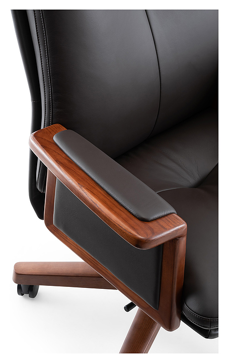 Кресло NORDEN Vivaldi A 2262 black предназначено для меблировки кабинета руководителя. Модель оснащена высокой спинкой, подлокотниками и механизмом качания мультиблок с фиксацией наклона в любом положении. Спинка и сиденье выполнены из высококачественной кожи, каркас и крестовина - из дерева, наполнение сиденья - из пенополиуретана. Особенности: