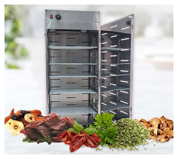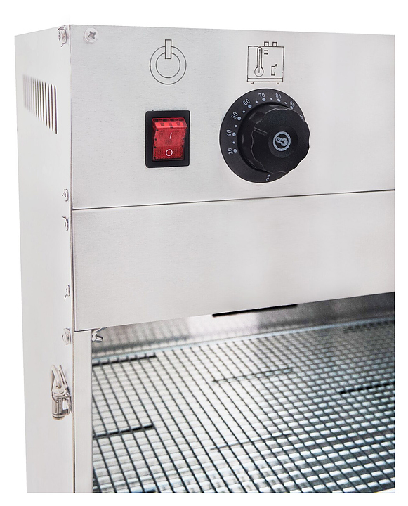 Дегидратор Hobbi Smoke используется на предприятиях пищевой промышленности, общественного питания и торговли, а также в домашних условиях для сушки овощей, фруктов, ягод, грибов и трав, вяления рыбы, расстойки теста, приготовления сухариков, пастилы и йогурта. Модель оснащена камерой с 24 уровнями направляющих для размещения поддонов. Корпус выполнен из высококачественной нержавеющей стали AISI 430, толщиной 0,8 мм. В комплект поставки входят 5 съемных решетчатых поддона. Особенности: