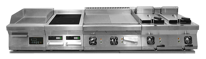 Жарочная поверхность Kocateq MCIG46S используется в составе тепловой линии 600 или отдельно на предприятиях общественного питания и торговли для жарки мясных и рыбных стейков, колбасок, сосисок, сарделек, шпикачек, котлет для бургеров, овощей и других продуктов питания. Модель оснащена сенсорной панелью с цифровым термостатом, тамером на 24 часа и регулируемыми по высоте ножками. Корпус выполнен из нержавеющей стали AISI 201, жарочная поверхность - из стали. Особенности: