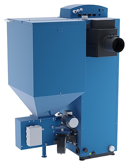 Автоматический твердотопливный котел Zota Pellet-40S предназначен для теплоснабжения индивидуальных жилых домов и зданий коммунально-бытового назначения, оборудованных системой водяного отопления с принудительной циркуляцией, а также горячего водоснабжения при наличии бака косвенного нагрева. Котел состоит из топливного бункера с откидной крышкой и вертикально ориентированного рабочего корпуса из 3 секций: центральной – камерой загрузки (топкой), верхней – прочистной с жаротрубным теплообменником большой площади и нижней для сбора золы, каждая секция имеет распашную дверь с поворотной рукояткой-фиксатором, корпус оснащен 2 патрубками для теплоносителя: входным снизу и выходным сверху, входным и выходным патрубками рециркуляции, сливным патрубком, отверстиями для установки дымохода и болтом для заземления, контроллер – панелью управления с мембранной клавиатурой и информативным жидкокристаллическим дисплеем индикации. Кожухи выполнены из листовой стали с внешним антикоррозийным покрытием в комбинации голубого и серого тонов, тарелка горелки – из нержавеющей стали, рассекатель – из чугуна.
