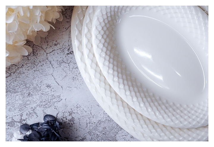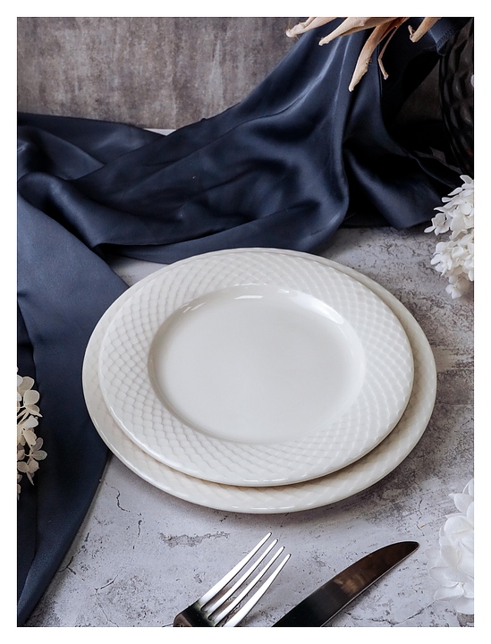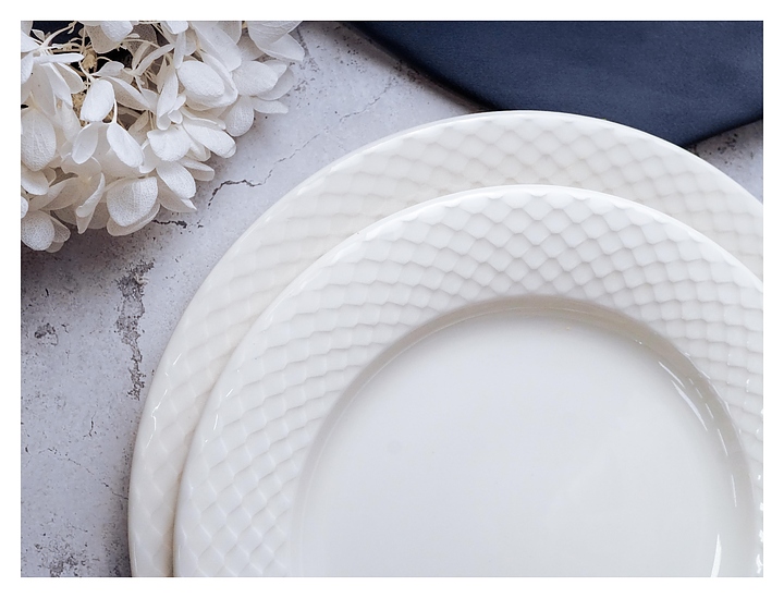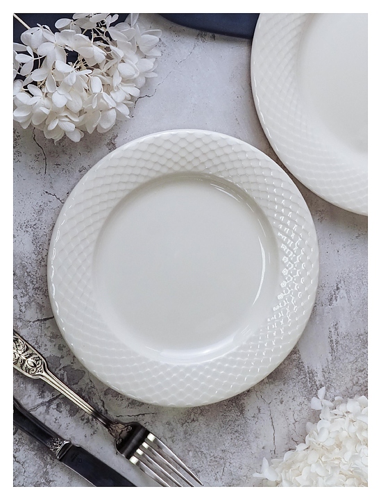 Мелкая тарелка Porland 18BB23 серии Aqua Alumilite предназначена для профессионального использования на предприятиях общественного питания. Декор изделия отражает простоту и лаконичность и отличается рельефным узором. Посуда изготавливается по запатентованной технологии Alumilite с добавлением оксида алюминия, что делает ее устойчивой к сколам, механическим и термическим воздействиям. Изделие выполнено из твердого фарфора и покрыто высококачественной тугоплавкой глазурью Feldspatic. Особенности:
