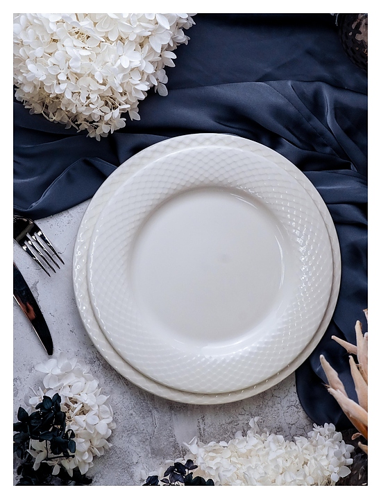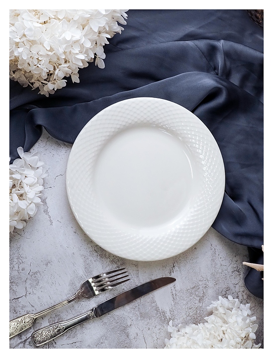 Мелкая тарелка Porland 18BB30 серии Aqua Alumilite предназначена для профессионального использования на предприятиях общественного питания. Декор изделия отражает простоту и лаконичность и отличается рельефным узором. Посуда изготавливается по запатентованной технологии Alumilite с добавлением оксида алюминия, что делает ее устойчивой к сколам, механическим и термическим воздействиям. Изделие выполнено из твердого фарфора и покрыто высококачественной тугоплавкой глазурью Feldspatic. Особенности: