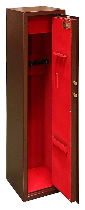Оружейный сейф Valberg Арсенал EL Gold предназначен для безопасного хранения длинноствольного огнестрельного оружия, патронов и аксессуаров в гостиницах, отелях, частных домах и квартирах. Модель оснащена распашной дверью и внутренним патронным отделением (трейзером), запирающимся на ключ. Корпус выполнен из высококачественной стали с износостойким лакированным покрытием, внутренняя обивка – из бархата, покрытие замка – 24-каратное золото. Особенности: