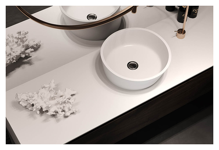 Раковина Holbi Almatea Soft Rock популярной белорусской компании легко вписывается в интерьер любой ванной комнаты. Накладная конструкция изделия позволяет произвести быстрый монтаж, экономит место, и обеспечивает изящный внешний вид. Изделие выполнено из новаторского композитного материала Soft Rock, состоящего на 70% из природных материалов и на 30% из сырьевой композиции. В комплект поставки входит клапан с накладкой. Особенности: