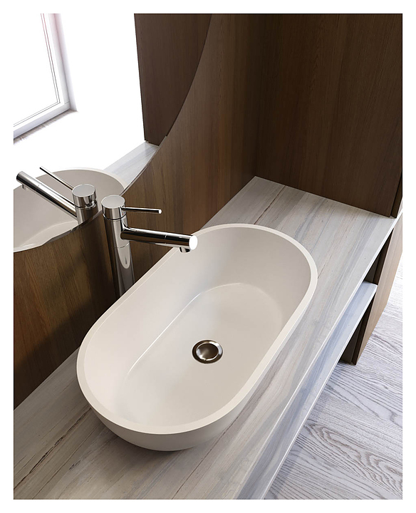 Раковина Holbi Mercury Soft Rock популярной белорусской компании легко вписывается в интерьер любой ванной комнаты. Накладная конструкция изделия позволяет произвести быстрый монтаж, экономит место, и обеспечивает изящный внешний вид. Изделие выполнено из новаторского композитного материала Soft Rock, состоящего на 70% из природных материалов и на 30% из сырьевой композиции. В комплект поставки входит клапан с накладкой. Особенности: