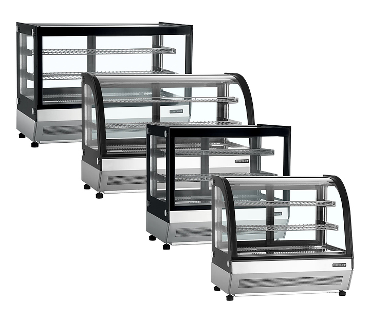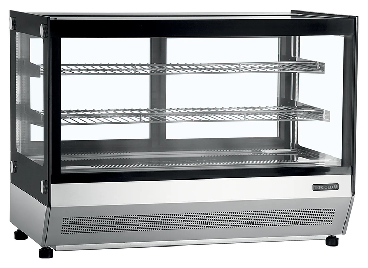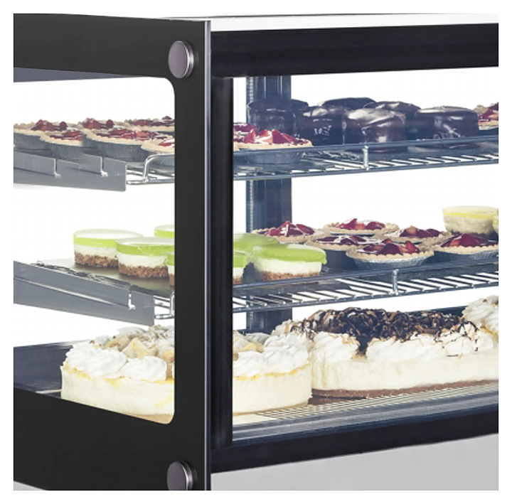 Настольная кондитерская витрина TEFCOLD LCT900F/BLACK предназначена для охлаждения, кратковременного хранения и демонстрации выпечки, тортов, пирожных и пиццы на предприятиях общественного питания и торговли. Модель оснащена 2 раздвижными стеклянными дверцами, 2 решатчатыми хромированными полками, термометром, электронным блоком управления, LED-подстветкой и 4 регулируемыми ножками. Изделие выполнено из нержавеющей стали. Особенности: