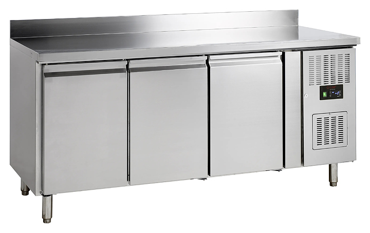 Холодильный стол TEFCOLD GC73 используется на предприятиях общественного питания и торговли для раскатки теста и обработки ингредиентов для приготовления блюд, охлаждения и кратковременного хранения продуктов. Прибор оснащен 3 распашными самозакрывающимися дверцами, термометром, 3 решатчатыми белыми полками GN1/1 и 4 регулируемыми ножками. Корпус и внутренняя отделка выполнены из нержавеющей стали SS201. Особенности: