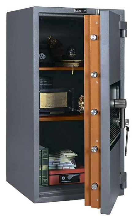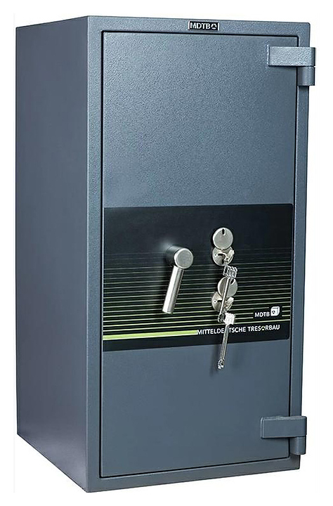 Взломостойкий сейф MDТB BANKER M 1055 2K предназначен для хранения ценных бумаг, ювелирных изделий и денежных сумм частных лиц и организаций. Модель используется в банковской и финансовой сфере, на крупных торговых и производственных предприятиях, в научно-исследовательских, медицинских организациях, а также на военизированных объектах для хранения средств кассы, оружия, нематериальных активов, культурных ценностей, биологических и медицинских препаратов, не предусматривающих особых температурно-влажностных норм хранения. При заливке двери и корпуса используется запатентованная система высокопрочного армированного бетона. Изделие оснащено 2 ключевыми замками KABA MAUER и анкерным креплением к полу и стене. В комплект поставки входят анкерные болты и 2 ключа. Особенности: