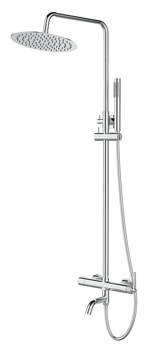 Душевая система ESKO Bangkok ST250BG предназначена для использования в ванных помещениях для подачи горячей и холодной воды. Модель оснащена верхним тропическим душем, поворотным изливом, выдвижной телескопической стойкой, однорежимным ручным душем с плавающим держателем и душевым шлангом, а также керамическим картриджем, обеспечивающим плавный ход рычага смесителя, контроль и точность при выборе напора и температуры воды. Изделие выполнено из ABS-пластика и нержавеющей стали. В комплект поставки входит монтажный комплект. Особенности:
