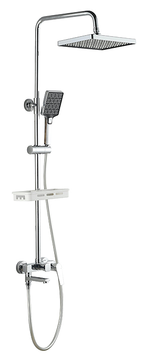 Душевая система ESKO Istanbul ST1425IT предназначена для использования в ванных помещениях для подачи горячей и холодной воды. Модель оснащена квадратным верхним тропическим душем, изливом, выдвижной телескопической стойкой, полочкой, трехрежимным ручным душем с плавающим держателем и душевым шлангом, а также керамическим картриджем, обеспечивающим плавный ход рычага смесителя, контроль и точность при выборе напора и температуры воды. Изделие выполнено из ABS-пластика и нержавеющей стали. В комплект поставки входит монтажный комплект. Особенности: