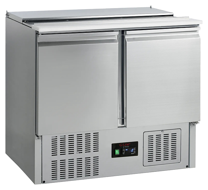 Стол-саладетта TEFCOLD GS92 предназначен для приготовления различных салатов, а также кратковременного хранения ингредиентов для них на предприятиях общественного питания и торговли. Прибор оснащен 2 распашными глухими дверцами, 2 решатчатыми белыми полками GN1/1, термометром и 4 регулируемыми ножками. Корпус и внутренняя отделка выполнены из нержавеющей стали SS304. Особенности: