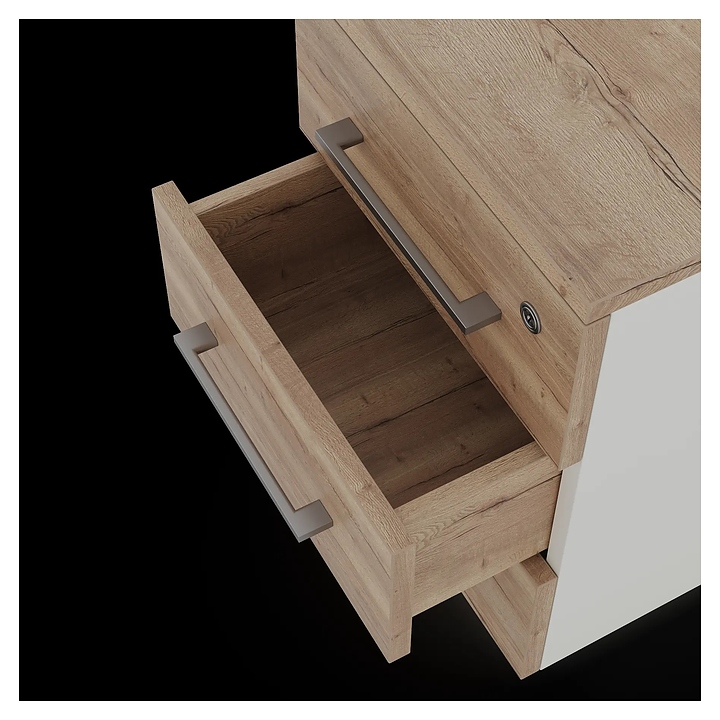 Приставная тумба Кобор TS3-40/70 white/natural используется совместно с офисными столами. Модель оснащена 3 выдвижными ящиками и 4 регулируемыми по высоте опорами. Корпус выполнен из ламинированной древесно-стружечной плиты (ЛДСП) цвета белый муар (RAL9016), столешница и ящики – из ЛДСП цвета натуральный дуб (H1180 ST37). Внимание! На фото аналогичная модель другого размера. Внимание! Информация о товарах, размещенная на сайте, не является публичной офертой, определяемой положениями Части 2 Статьи 437 Гражданского кодекса Российской Федерации. Производители вправе вносить изменения в технические характеристики, внешний вид и комплектацию товаров без предварительного уведомления. Уточняйте характеристики у наших менеджеров перед оформлением заказа. |