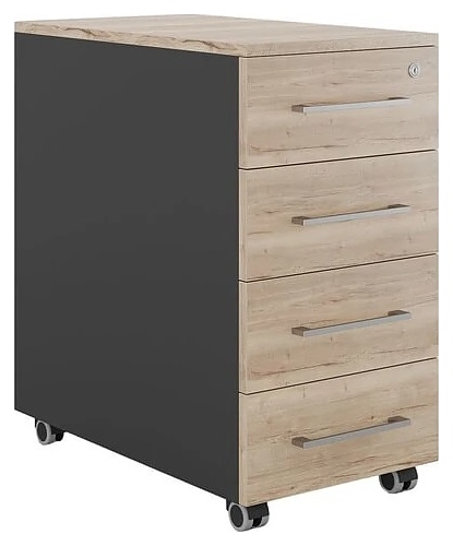 Мобильная тумба Кобор TМ4-40/70 black/natural используется совместно с офисными столами. Модель оснащена 4 выдвижными ящиками и 4 колесами. Корпус выполнен из ламинированной древесно-стружечной плиты (ЛДСП) цвета черный муар (RAL9005), столешница и ящики – из ЛДСП цвета натуральный дуб (H1180 ST37). Внимание! На фото аналогичная модель другого размера. Внимание! Информация о товарах, размещенная на сайте, не является публичной офертой, определяемой положениями Части 2 Статьи 437 Гражданского кодекса Российской Федерации. Производители вправе вносить изменения в технические характеристики, внешний вид и комплектацию товаров без предварительного уведомления. Уточняйте характеристики у наших менеджеров перед оформлением заказа. |