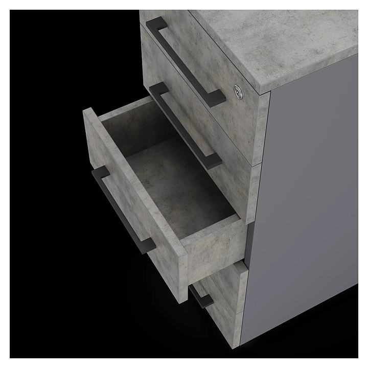 Мобильная тумба Кобор TМ5-40/70 graphite/chicago используется совместно с офисными столами. Модель оснащена 5 выдвижными ящиками и 4 колесами. Корпус выполнен из ламинированной древесно-стружечной плиты (ЛДСП) цвета графит муар (RAL7024), столешница и ящики – из ЛДСП цвета бетон чикаго (F186 ST9). Внимание! На фото аналогичная модель другого размера. Внимание! Информация о товарах, размещенная на сайте, не является публичной офертой, определяемой положениями Части 2 Статьи 437 Гражданского кодекса Российской Федерации. Производители вправе вносить изменения в технические характеристики, внешний вид и комплектацию товаров без предварительного уведомления. Уточняйте характеристики у наших менеджеров перед оформлением заказа. |