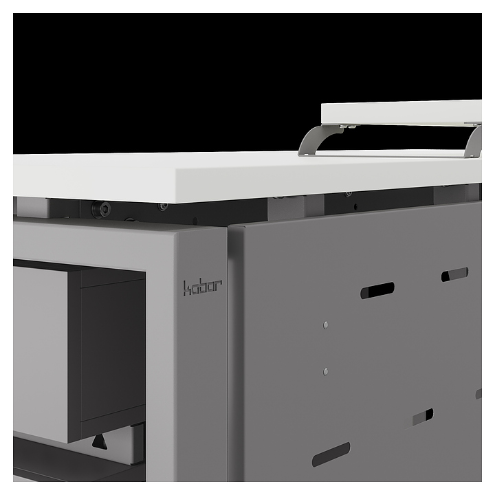Компьютерный стол Кобор KP-180/60 aluminum/premium используется в офисных помещениях и кабинетах руководителей. Модель оснащена П-образными опорами. Каркас выполнен из металла, выкрашенного в цвет алюминиевый металлик (RAL9006), столешница – из ламинированной древесно-стружечной плиты (ЛДСП) цвета белый премиум (W1000 ST9). Опции (заказываются отдельно):