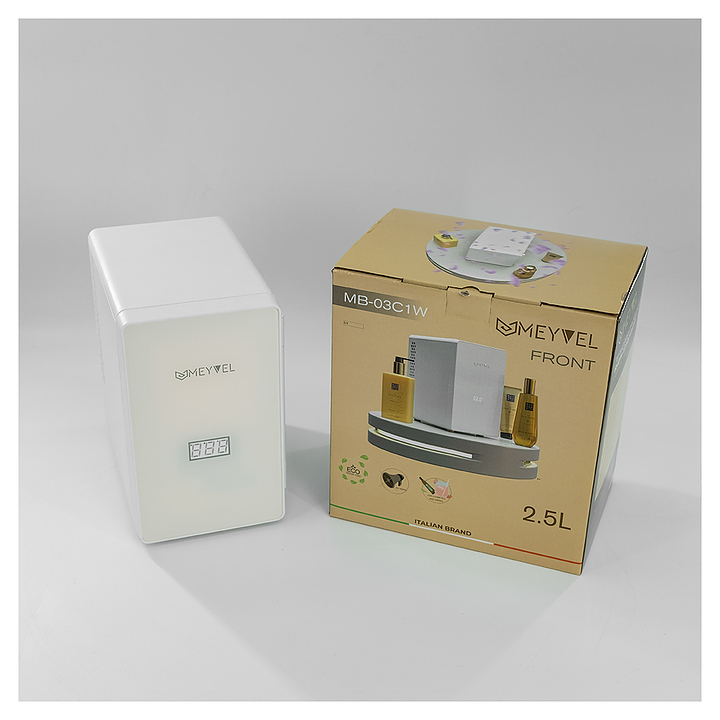 Холодильник MEYVEL MB-03C1W предназначен для хранения и транспортировки широкого спектра косметических средств в специализированных салонах, офисах, гостиницах и домашних условиях. Модель оснащена встроенным блоком питания, вертикально ориентированной камерой с распашной дверью на скрытых внешних петлях, кнопкой выключателя и светодиодным цифровым дисплеем индикации. Внешняя облицовка корпуса выполнена из белого пластика. Комплектация: