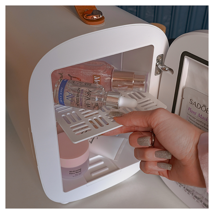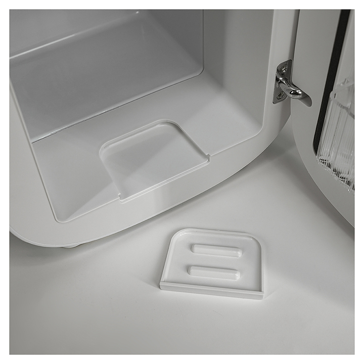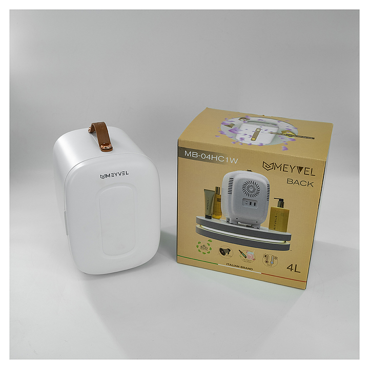 Холодильник MEYVEL MB-04HC1W предназначен для хранения и транспортировки широкого спектра косметических средств в специализированных салонах, офисах, гостиницах, транспорте и домашних условиях. Модель оснащена вертикально ориентированной камерой с распашной дверью на внутренних петлях и расположенной на задней стенке электромеханической панелью управления. Внешняя облицовка корпуса выполнена из белого пластика с глянцевой поверхностью, полка и корзина – из белого АБС-пластика, фурнитура рукоятки с покрытием медного оттенка. Комплектация: