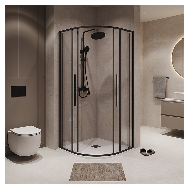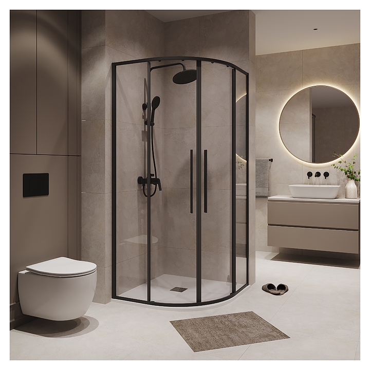 Душевой уголок Niagara NG 6826-34BLACK предназначен для использования в ванных комнатах. Модель оснащена 2 раздвижными дверями со стальными двойными роликами. Благодаря конструкции в форме четверти круга модель можно вписать даже в ванные комнаты небольшой площади. Профиль выполнен из анодированного алюминия, полотно двери - из закаленного стекла. Особенности: