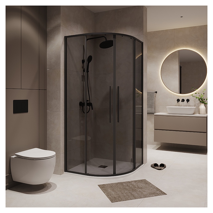 Душевой уголок Niagara NG 2826-34BLACK предназначен для использования в ванных комнатах. Модель оснащена 2 раздвижными дверями со стальными двойными роликами. Благодаря конструкции в форме четверти круга модель можно вписать даже в ванные комнаты небольшой площади. Профиль выполнен из анодированного алюминия, полотно двери - из закаленного стекла. Особенности: