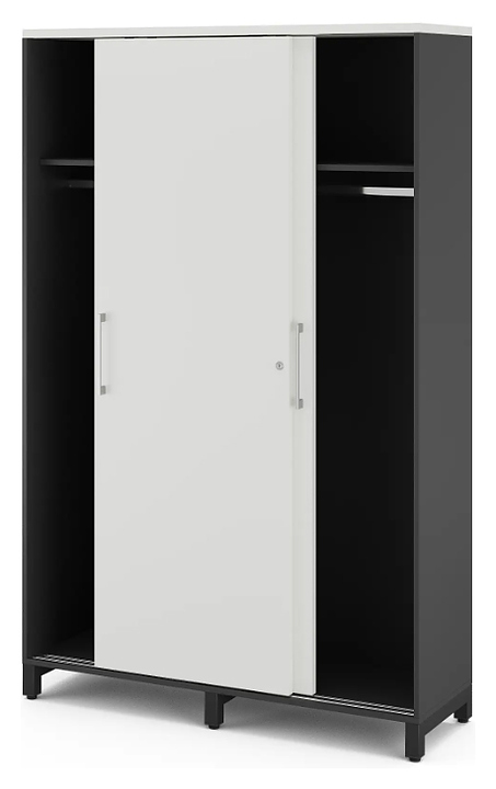 Шкаф для одежды Кобор HG-120/60/M используется в офисных помещениях и кабинетах руководителя. Модель оснащена 2 дверцами-купе с замком, 1 полкой, штангой для одежды и регулируемыми по высоте опорами. Корпус, верхняя крышка и дверцы выполнены из ЛДСП, задняя стенка и ножки - из металла. Дополнительные характеристики: