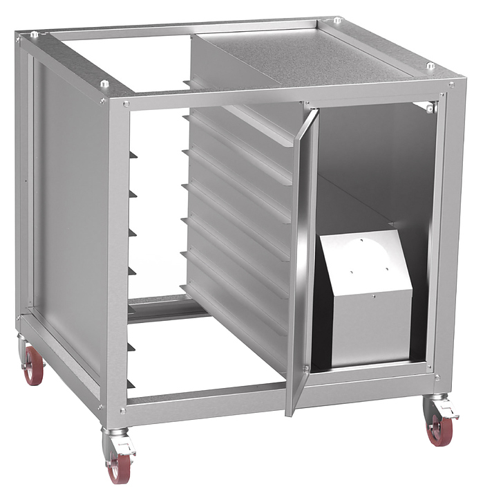 Подставка Radax RS8677H9S используется совместно с пароконвектоматами линеек Tolstoy, Chekhov с системой автоматической мойки: TL12DGCL, CC10DGCL, TL12DYCL, CC06DGCL, CC10DYCL, TL07DYCL, CC04DGCL, CC06DYCL, TL05DYCL, CC04DYCL. Модель оснащена 2 отсеками: с направляющими для хранения противней и баком под моющее средство, а также полкой для хранения инвентаря и моющих средств. Дополнительные характеристики: