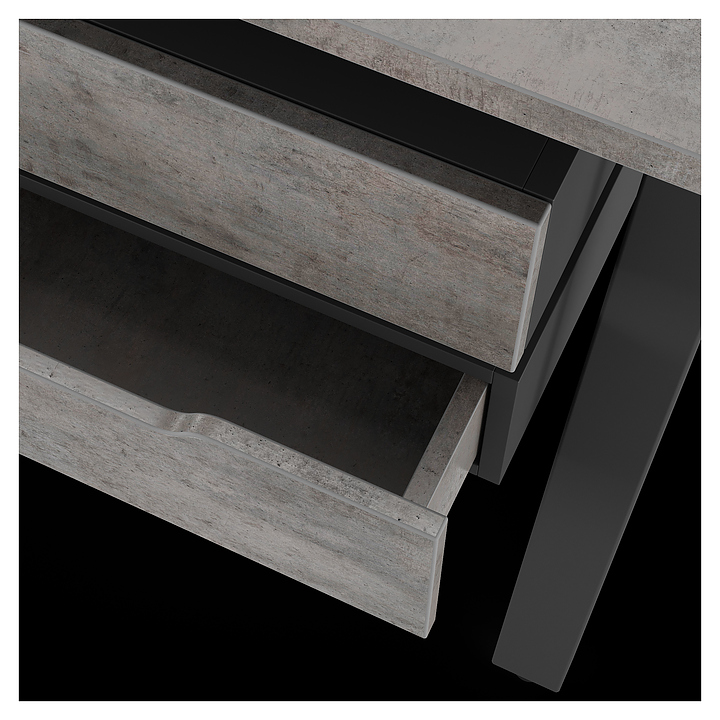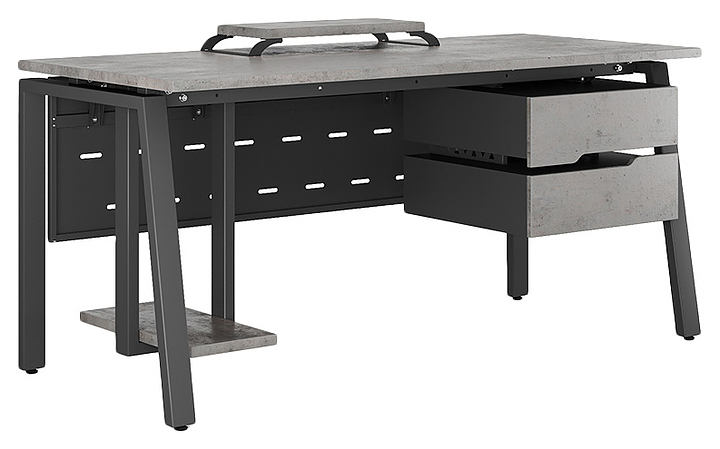 Компьютерный стол Кобор KAB-180/70 black/chicago используется в офисных помещениях и кабинетах руководителей. Модель оснащена A-образными опорами со скошенными фронтальными сегментами. Каркас выполнен из металла, выкрашенного в цвет черный муар (RAL9005), столешница – из ламинированной древесно-стружечной плиты (ЛДСП) цвета бетон чикаго (F186 ST9). Опции (заказываются отдельно):