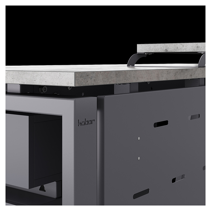 Компьютерный стол Кобор KAB-140/60 graphite/chicago используется в офисных помещениях и кабинетах руководителей. Модель оснащена A-образными опорами со скошенными фронтальными сегментами. Каркас выполнен из металла, выкрашенного в цвет графит муар (RAL7024), столешница – из ламинированной древесно-стружечной плиты (ЛДСП) цвета бетон чикаго (F186 ST9). Опции (заказываются отдельно):