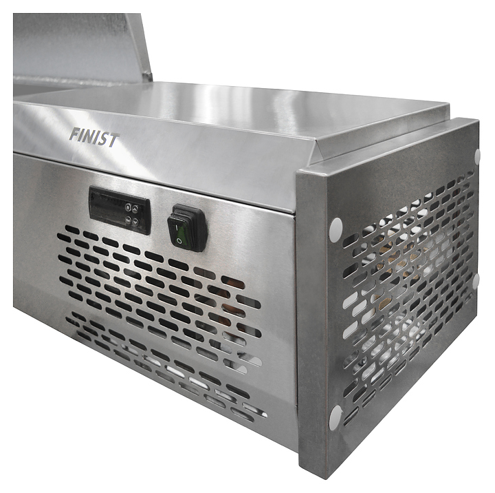 Настольная холодильная витрина Finist ToppingBox НХВкр-3 предназначена для демонстрации и кратковременного хранения подготовленных начинок и топпингов для пиццы, блинов, лапши WOK, а также мясных изделий и полуфабрикатов на предприятиях общественного питания и торговли. Модель оснащена крышкой, которая предотвращает попадание в гастроемкости посторонних предметов. Цельнозаливной корпус выполнен из высококачественной нержавеющей стали, отличающейся прочностью и долговечностью. Гастроемкости в комплект поставки не входят. Особенности: