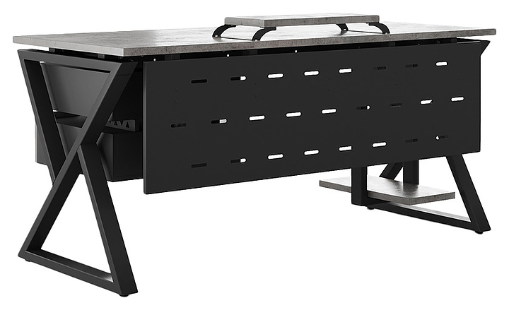 Компьютерный стол Кобор KW-80/60 black/chicago используется в офисных помещениях и кабинетах руководителей. Модель оснащена W-образными опорами. Каркас выполнен из металла, выкрашенного в цвет черный муар (RAL9005), столешница – из ламинированной древесно-стружечной плиты (ЛДСП) цвета бетон чикаго (F186 ST9). Опции (заказываются отдельно):
