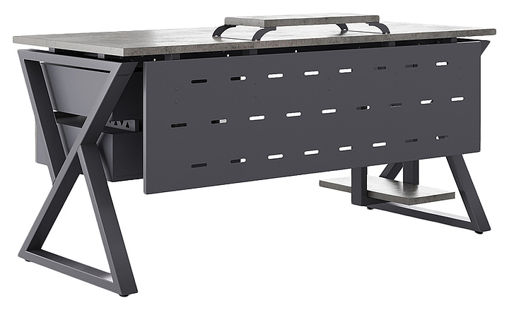 Компьютерный стол Кобор KW-80/60 graphite/chicago используется в офисных помещениях и кабинетах руководителей. Модель оснащена W-образными опорами. Каркас выполнен из металла, выкрашенного в цвет графит муар (RAL7024), столешница – из ламинированной древесно-стружечной плиты (ЛДСП) цвета бетон чикаго (F186 ST9). Опции (заказываются отдельно):