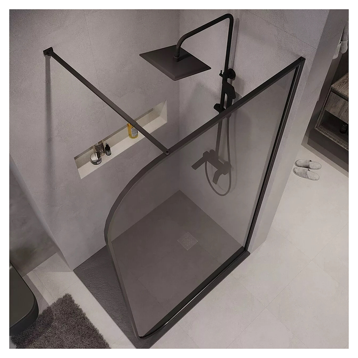 Душевая перегородка Niagara Nova NG-689-90TBLACK предназначена для использования в ванных комнатах. Модель оснащена матовым черным профилем по всему периметру полотна и телескопической штангой, позволяющей адаптировать перегородку к разным размерам душевого пространства. Профиль выполнен из полированного алюминия, полотно двери - из закаленного стекла. Особенности: