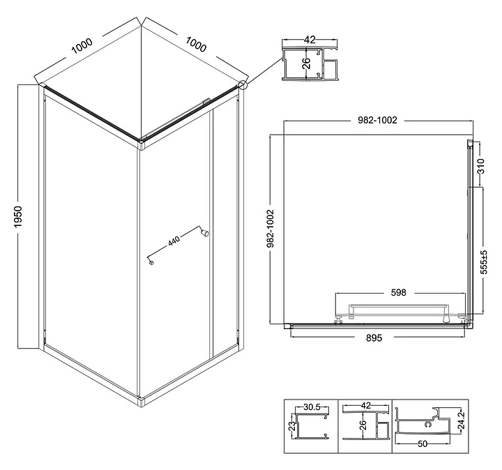 Уголок душевой Niagara Nova NG-6635-34 100х100х195 см, профиль хром