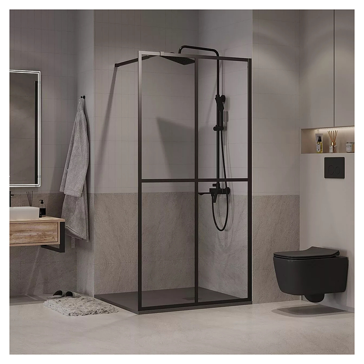 Перегородка душевая Niagara Nova NG-686-10BLACK 100х195 см, с рисунком, профиль черный матовый