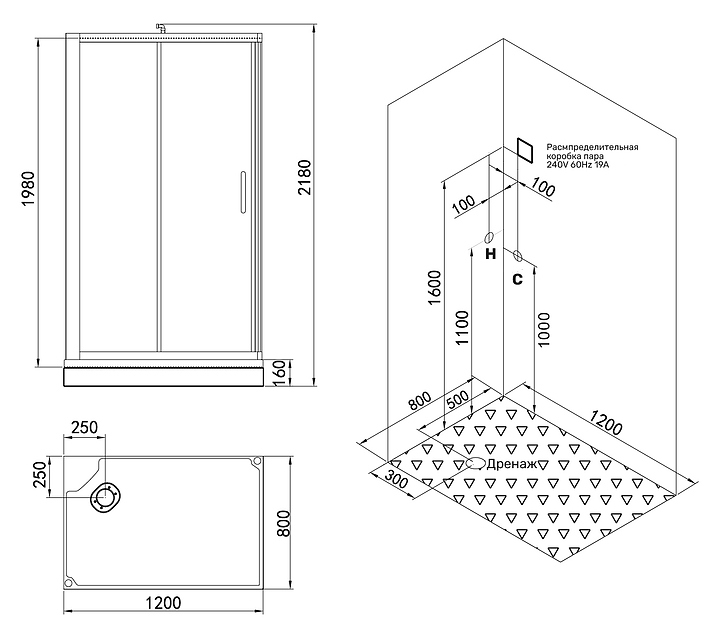 Душевая кабина SSWW BU621 L 120х80х218 см, левая, с гидромассажем и паром, прозрачное стекло, раздвижная, черный