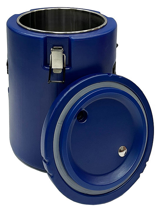 Термоконтейнер Kocateq CN13 предназначен для поддержания в течение длительного времени готовых блюд в разогретом и охлажденном виде и их доставки до индивидуального пользователя в офисы, школы, банковские учреждения, кейтеринговые компании, на предприятия общественного питания и фабрики-кухни. Цельнолитая двухслойная конструкция с инжекцией изготовлена из пенополиуретана высокой плотности, внутренняя емкость - из нержавеющей стали Aisi 201, клапан, защелки и ручки - из металла. Особенности: