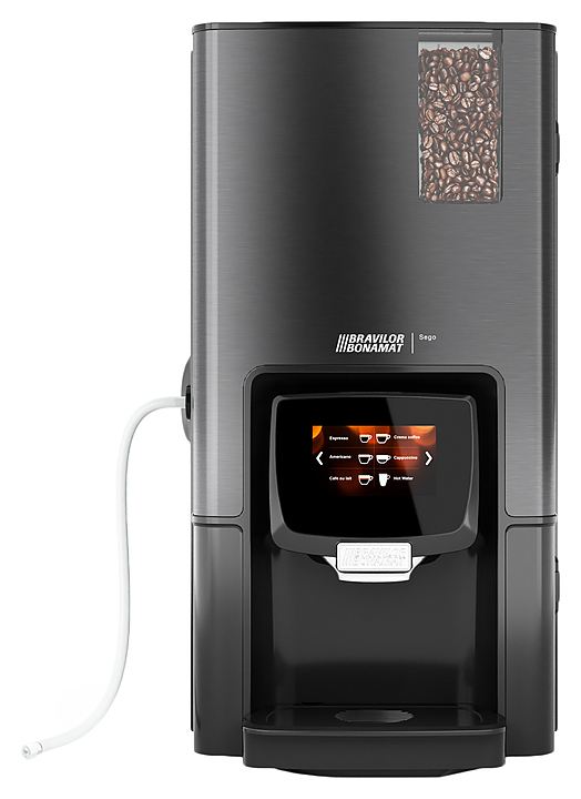 Автоматическая кофемашина Bravilor Bonamat SEGO 11L (STD) используется в офисах, на предприятиях общественного питания и торговли для приготовления кофе эспрессо, без кофеина, двойного эспрессо, латте, макиато, моккачино, горячего шоколада и других напитков. Модель оснащена сенсорным экраном с опциями настройки температуры воды, помола кофе и времени контакта. Диски кофемолки выполнены из нержавеющей стали. Холодильник для молока в комплект поставки не входит и приобретается отдельно. Рекомендуется дополнительно приобрести водоумягчитель и фильтр-систему для очистки и смягчения воды. Особенности: