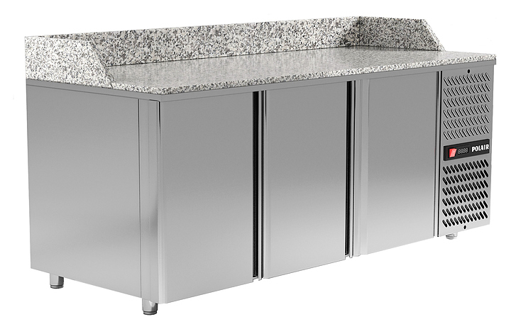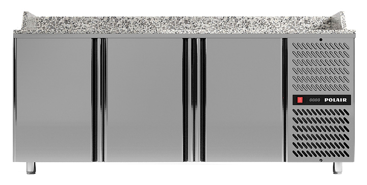 Холодильный стол для пиццы POLAIR TM3ENpizza-G серии BAKERY предназначен для раскатки теста, хранения продуктов и обработки ингредиентов для приготовления пиццы на предприятиях общественного питания и торговли. Стол оснащен 3 охлаждаемыми отделениями под противни с глухими дверями, просторной рабочей поверхностью и бортами с 3х сторон. Цельнозаливные корпус включая верхнюю часть и агрегатный отсек изготовлен из стали, обшивка корпуса изнутри - нержавеющая сталь, глухие двери с термоизоляцией ППУ, столешница из натурального гранита. Уникальная программа по расчету столов с выдвижными ящиками (более 5000 различных сочетаний). Особенности: