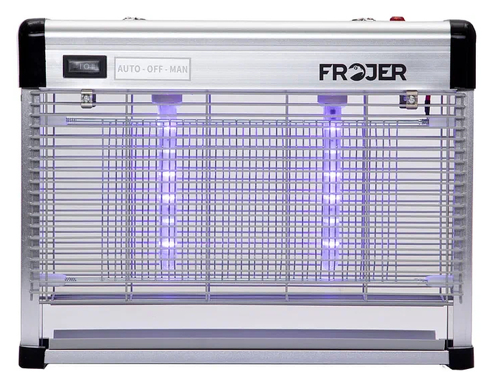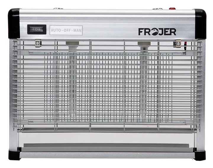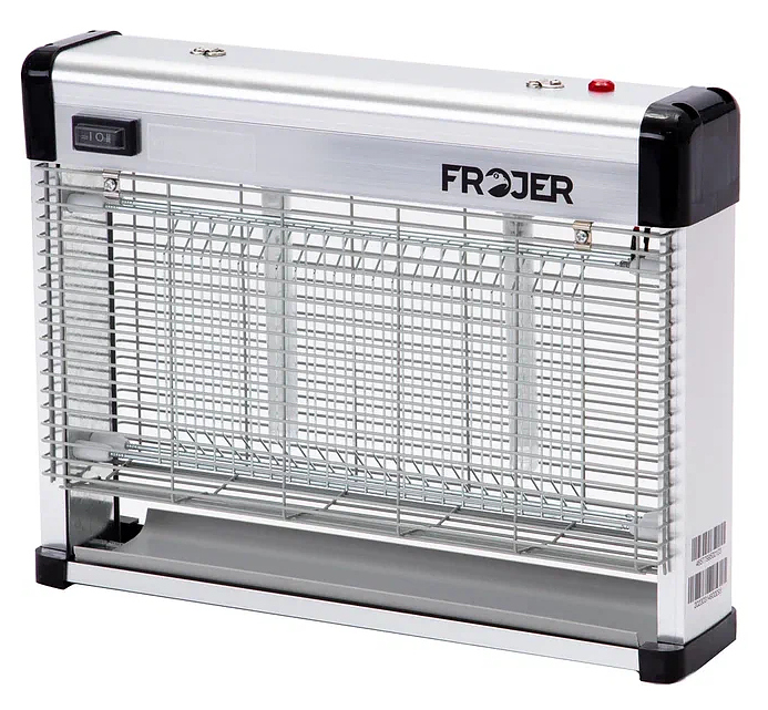 Инсектицидная лама FROJER PRO DX20WP предназначена для привлечения ультрафиолетовым излучением и уничтожения электрическим током комаров, мух, мотыльков и прочих летающих вредителей посредством находящихся под высоким напряжением металлических решеток в залах кафе, ресторанов и на других предприятиях общественного питания. В комплект поставки входит цепь для подвешивания. Особенности: