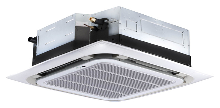 Кассетная сплит-система EXPERTAIR HARD ZAC-HD24XCAC-IU предназначена для охлаждения, нагрева, осушения и вентиляции воздуха в промышленных и коммерческих помещениях. Кондиционер состоит из внутреннего и наружного блоков, соединенных трубопроводами. Модель оснащена ЖК-дисплеем для отображения установленной температуры. Теплообменники выполнены с антикоррозийным покрытием Blue Fin. В комплект поставки входит ИК-пульт и декоративная панель. Особенности: