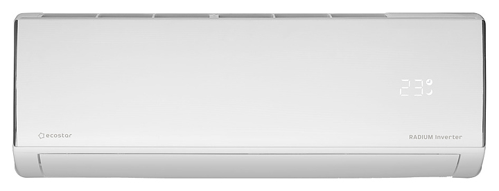 Настенная сплит-система EcoStar KVS-IRAD07CHсерии RADIUM Inverter используется для создания максимально кофмортных условий микроклимата в жилых, офисных и коммерческих помещениях. Модель состоит из внутреннего блока KVS-IRAD07CH/IN и наружного блока KVS-IRAD07CH/OUT. Наружный блок оснащен защитными вентиляционной решеткой и крышкой для вентилей, внутренний блок – воздухозаборной решеткой, откидной фронтальной панелью, подвижной горизонтальной заслонкой, электронным блоком управления и светодиодным дисплеем скрытого типа с проецируемой на фронтальную панель индикацией, пульт – информативным жидкокристаллическим дисплеем и кнопочной клавиатурой. Облицовка внутреннего блока выполнена из пластика с поверхностью белого цвета, корпус пульта – из ударопрочного белого пластика, ламели теплообменников с антикоррозийным покрытием Blue Fin.