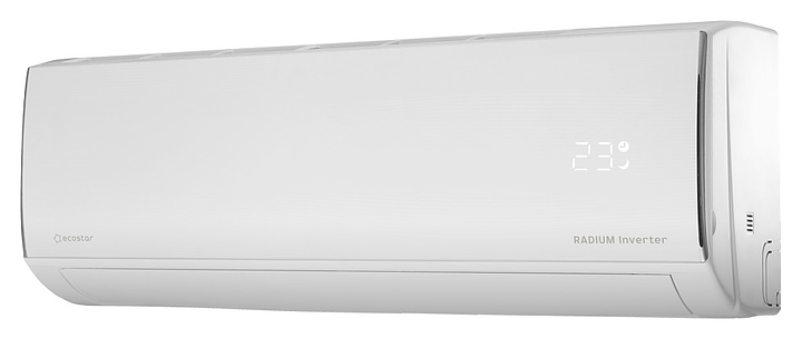 Настенная сплит-система EcoStar KVS-IRAD09CHсерии RADIUM Inverter используется для создания максимально кофмортных условий микроклимата в жилых, офисных и коммерческих помещениях. Модель состоит из внутреннего блока KVS-IRAD09CH/IN и наружного блока KVS-IRAD09CH/OUT. Наружный блок оснащен защитными вентиляционной решеткой и крышкой для вентилей, внутренний блок – воздухозаборной решеткой, откидной фронтальной панелью, подвижной горизонтальной заслонкой, электронным блоком управления и светодиодным дисплеем скрытого типа с проецируемой на фронтальную панель индикацией, пульт – информативным жидкокристаллическим дисплеем и кнопочной клавиатурой. Облицовка внутреннего блока выполнена из пластика с поверхностью белого цвета, корпус пульта – из ударопрочного белого пластика, ламели теплообменников с антикоррозийным покрытием Blue Fin.