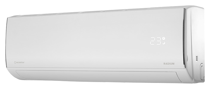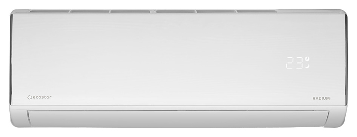Настенная сплит-система EcoStar KVS-RAD24CHсерии RADIUM используется для создания максимально кофмортных условий микроклимата в жилых, офисных и коммерческих помещениях. Модель состоит из внутреннего блока KVS-RAD24CH/IN и наружного блока KVS-RAD24CH/OUT. Наружный блок оснащен защитными вентиляционной решеткой и крышкой для вентилей, внутренний блок – воздухозаборной решеткой, откидной фронтальной панелью, подвижной горизонтальной заслонкой, электронным блоком управления и светодиодным дисплеем скрытого типа с проецируемой на фронтальную панель индикацией, пульт – информативным жидкокристаллическим дисплеем и кнопочной клавиатурой. Облицовка внутреннего блока выполнена из пластика с поверхностью белого цвета, корпус пульта – из ударопрочного белого пластика, ламели теплообменников с антикоррозийным покрытием Blue Fin.