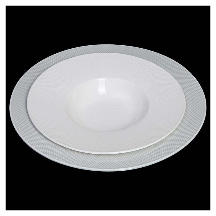 Тарелка Corone Rosenthal XSY3762 используется для подачи пасты в ресторанах, кафе, на других предприятиях общественного питания и в домашних условиях. Модель круглой формы оснащена широким бортом с декоративным рельефом. Изделие выполнено из высококачественного фарфора дымчато-голубого оттенка гейнсборо. Особенности: