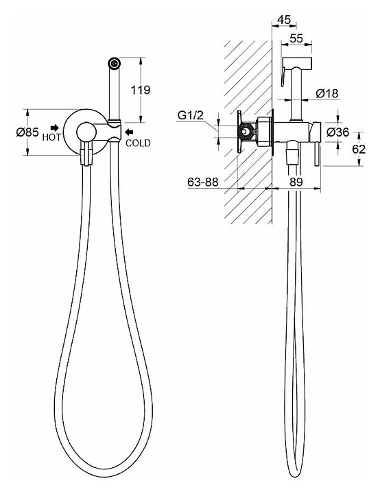 Душ гигиенический со смесителем Aquatek Европа AQ1021CR хром