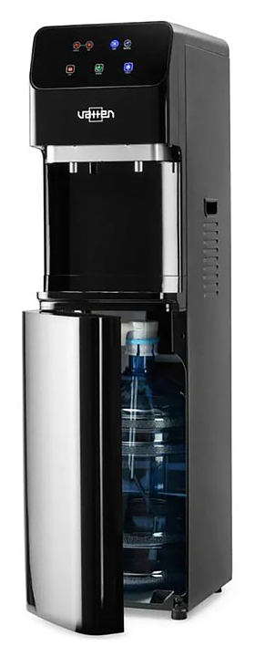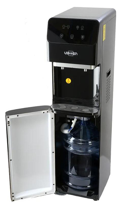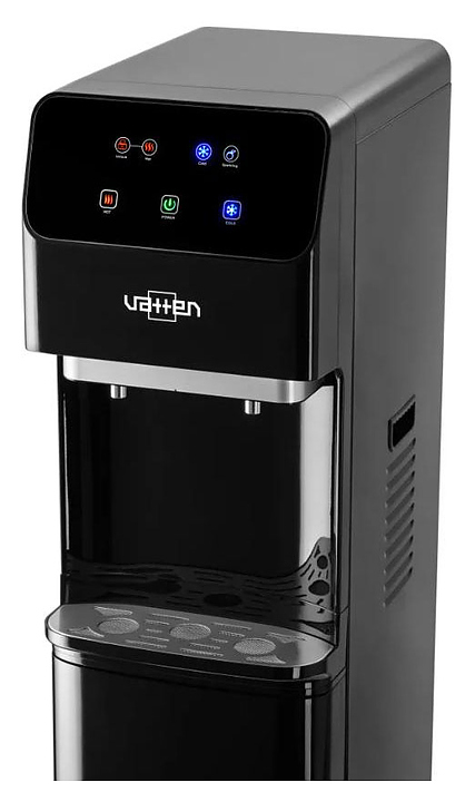 Кулер Vatten L05NKG предназначен для разлива и нагрева питьевой воды в больших офисах с повышенными потребностями в горячей и холодной воде, коттеджах, террасах, бассейнах, в столовых, коктейль-барах, барах у бассейнов, небольших пляжных барах и небольших отелях. Модель оснащена 2 кранами с сенсорными кнопками: один - для горячей воды, второй - для газированной и охлажденной воды. Кнопка горячей воды имеет фиксатор защиты от детей в виде дополнительной кнопки. Удобная нижняя загрузка позволяет произвести замену бутыли, не отрывая её от пола. Особенности: