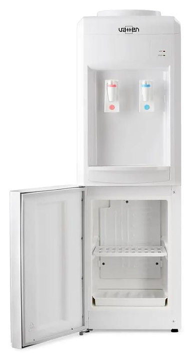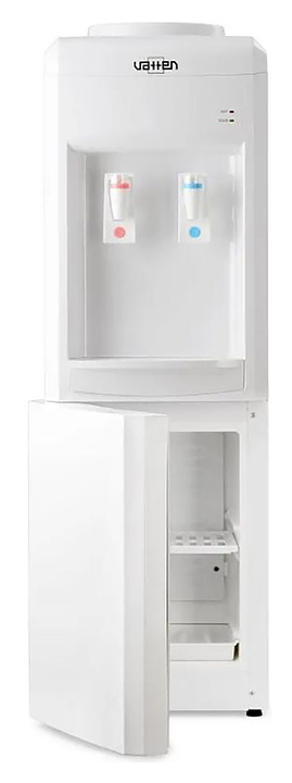 Кулер Vatten V04WKB предназначен для разлива и нагрева питьевой воды в офисах. Подача воды осуществляется нажатием на рычаг крана кружкой. Модель оснащена холодильной камерой для хранения продуктов и напитков. Крепления для стаканодержателя располагаются на магните и саморезах. Дополнительные характеристики: