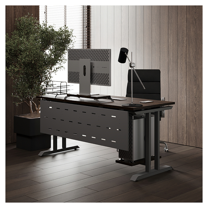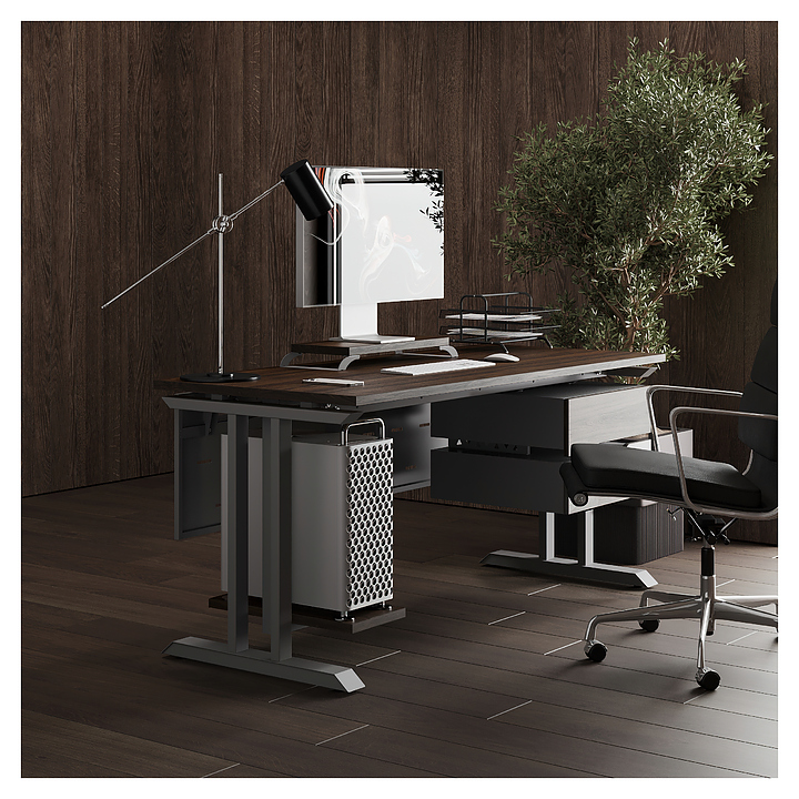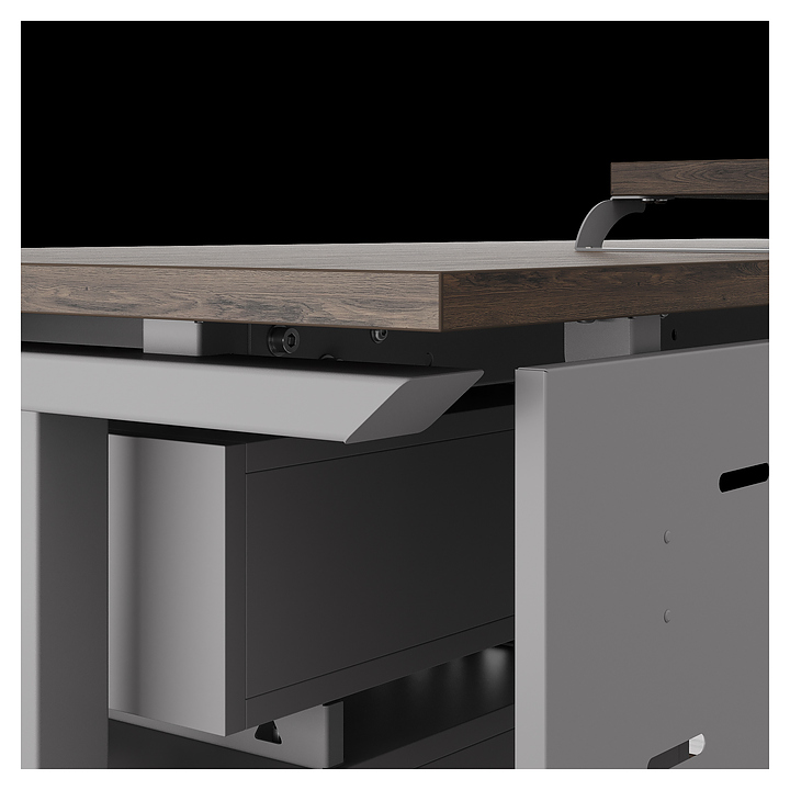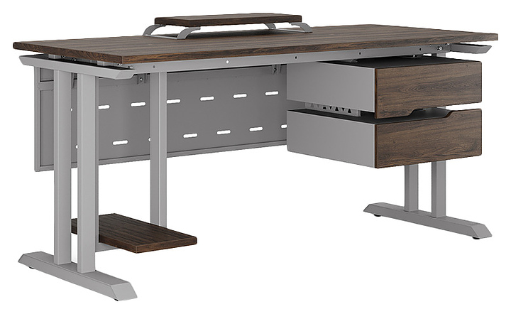 Компьютерный стол Кобор КT-80/60 aluminum/charlston используется в офисных помещениях и кабинетах руководителей. Модель оснащена T-образными опорами. Каркас выполнен из металла, выкрашенного в цвет алюминиевый металлик (RAL9006), столешница – из ламинированной древесно-стружечной плиты (ЛДСП) цвета дуб чарльстон (H3154 ST36). Опции (заказываются отдельно):
