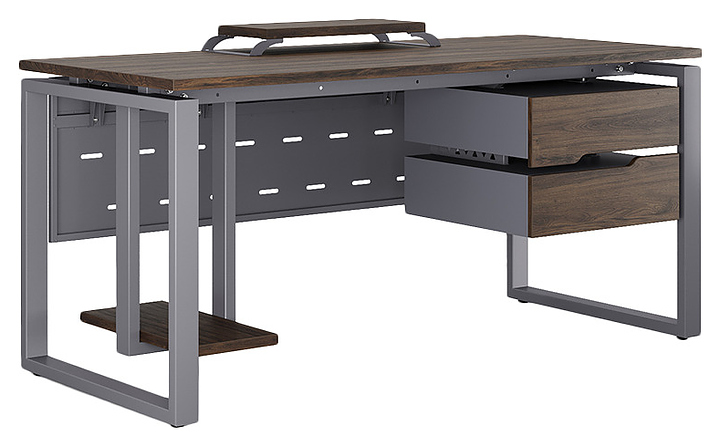 Компьютерный стол Кобор KO1-80/60 graphite/charlston используется в офисных помещениях и кабинетах руководителей. Модель оснащена O-образными опорами. Каркас выполнен из металла, выкрашенного в цвет графит муар (RAL7024), столешница – из ламинированной древесно-стружечной плиты (ЛДСП) цвета дуб чарльстон (H3154 ST36). Опции (заказываются отдельно):